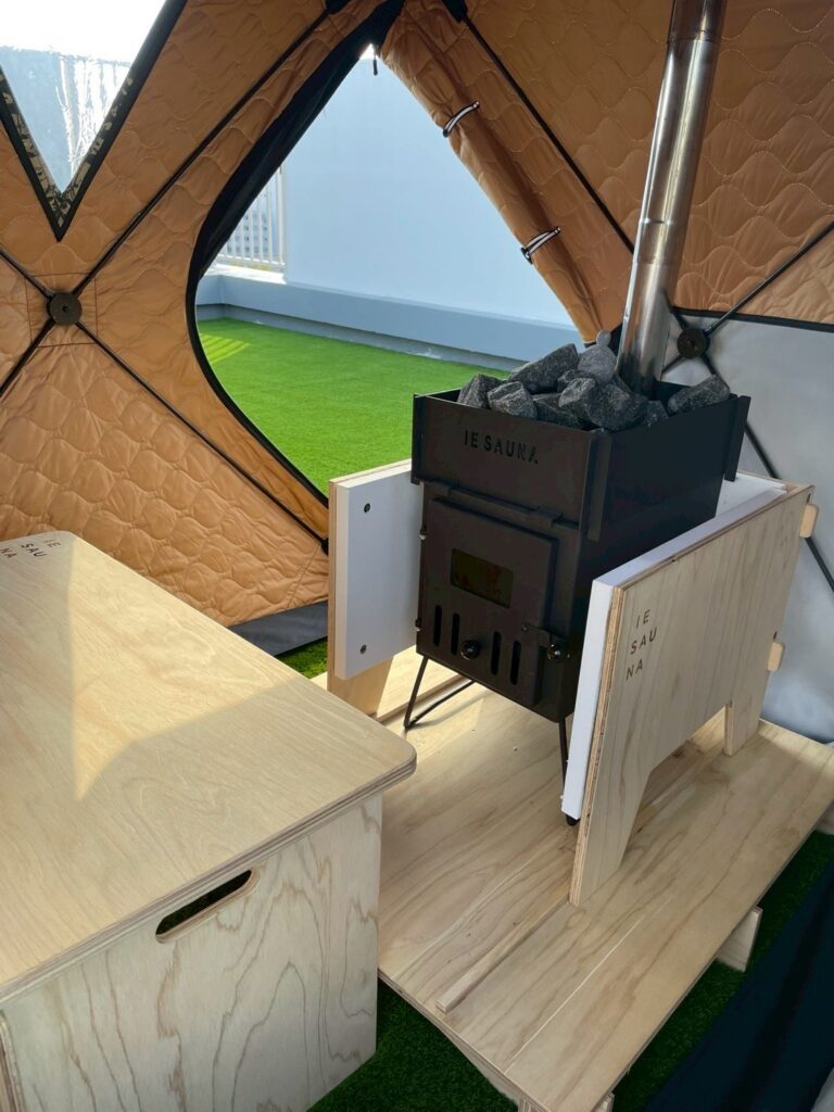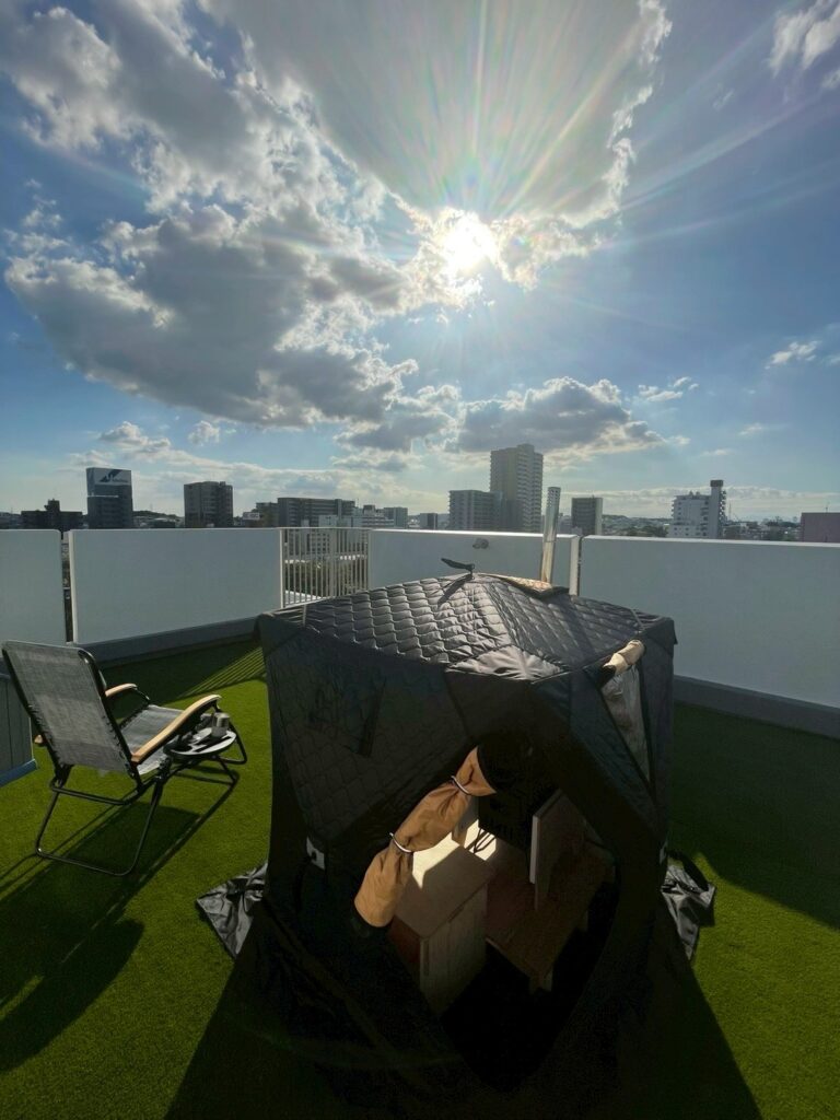 愛知県名古屋市内のモデルハウスに、屋上空間を活かした「テントサウナ+バイオエタノールストーブ」を導入いただきました。