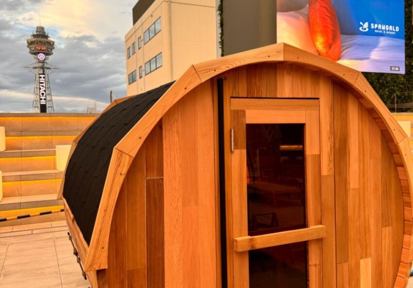 大阪の温浴施設「スパワールド ホテルアンドリゾート」様にて、屋上スペースにバレルサウナを導入いただきました。