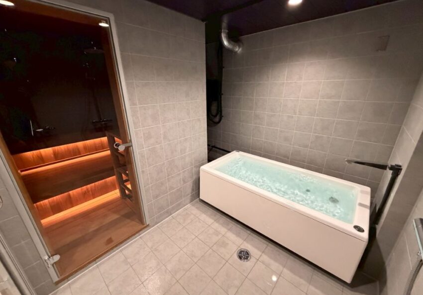 サウナ室と水風呂を隣接させたレイアウトにより、温冷交代浴がスムーズに行える動線設計となっています。