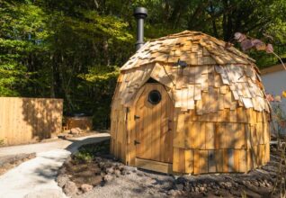 こちらの宿泊者専用にアウトドアのサウナ小屋があり、水着着用で男女一緒に利用できます。