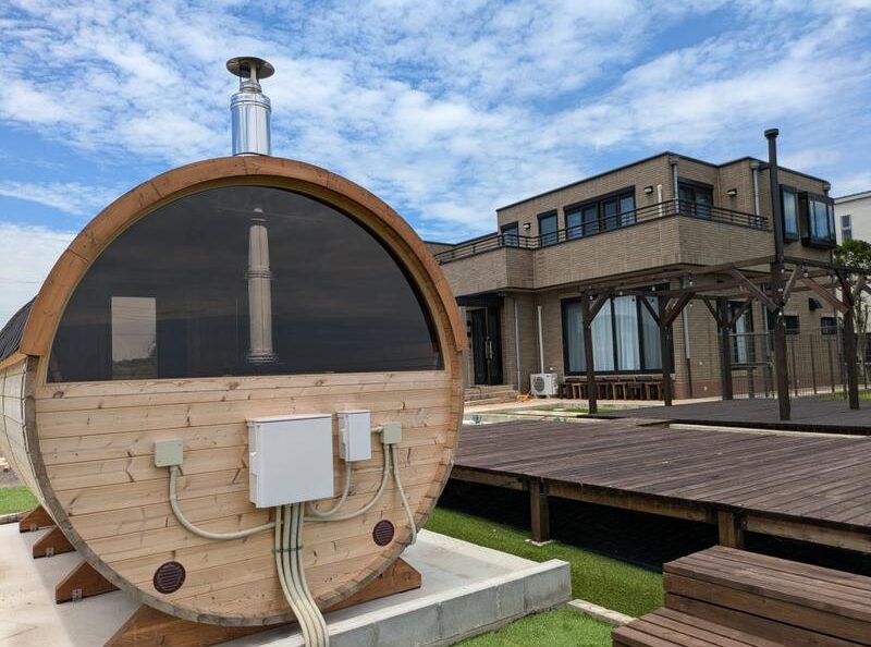 こちらには宿泊者専用のオプションのバレルサウナがあり、2人ほどが入れるサイズです。
