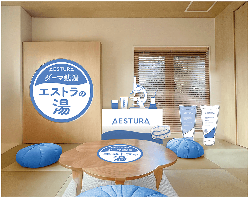 期間中は、AESTURAの人気商品「アトバリア365 クリーム」から着想を得た特別風呂、“アトバリアの湯”が楽しめます。