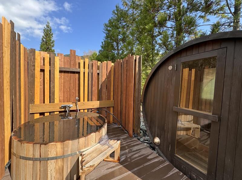 敷地内にそれぞれタイプの異なるバレルサウナが4基あり、貸切で利用できます。