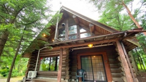 「レアリゼビレッジ」にある一棟貸しの別荘のうちの1つで、丸太が特徴的なカナディアンログハウスになっています。