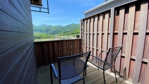 また、外気浴スペースとは別に広いテラスもあり、広大なブドウ畑が目の前に広がりますよ。