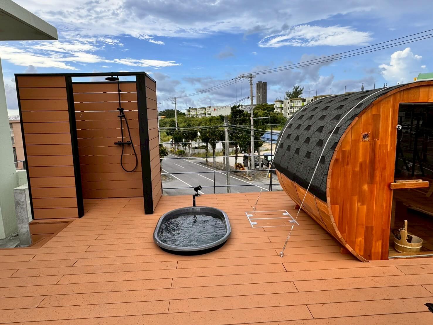 国産ひのき水風呂をアウトドアプライベートサウナに導入。
