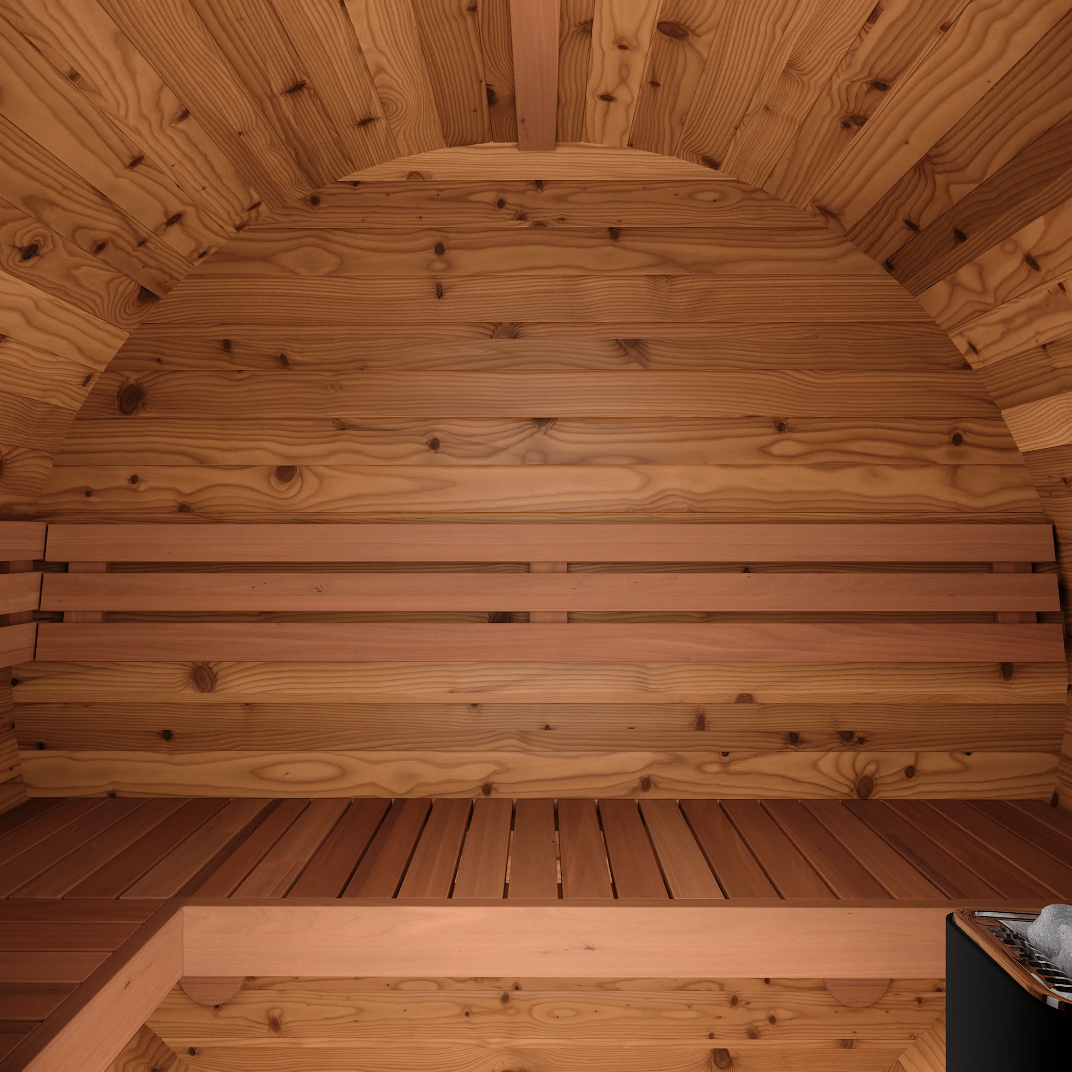 バレル(樽)型のデザインは熱の循環効率が高く、短時間で室内を温められるのが特長です。見た目にもおしゃれで、設置も比較的簡単なため、個人宅や別荘に人気があります。木の香りや温もりを感じられる点も魅力です。