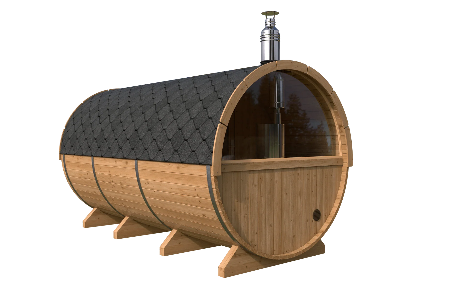 バレルサウナはサイズによって異なりますが、以下が一般的な本体サイズの目安です。