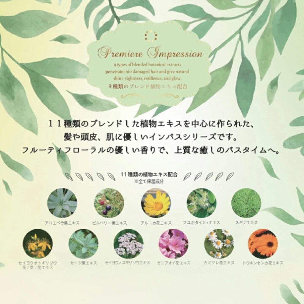 11種類のブレンド植物エキスを中心に作られた髪や頭皮、肌に優しいインバスシリーズです。