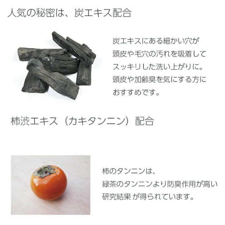 また、防臭作用の高い柿渋エキス(柿タンニン)配合で頭皮や加齢臭を気にする方におすすめです。