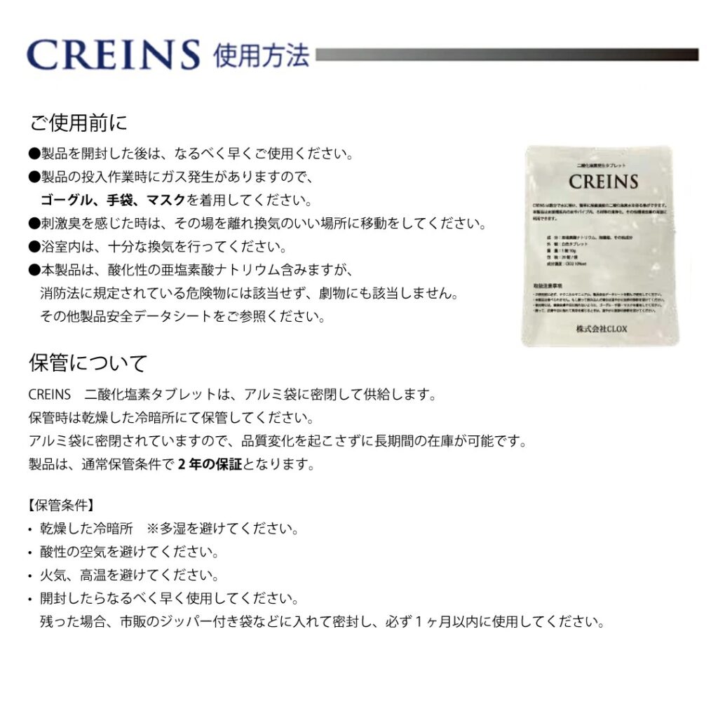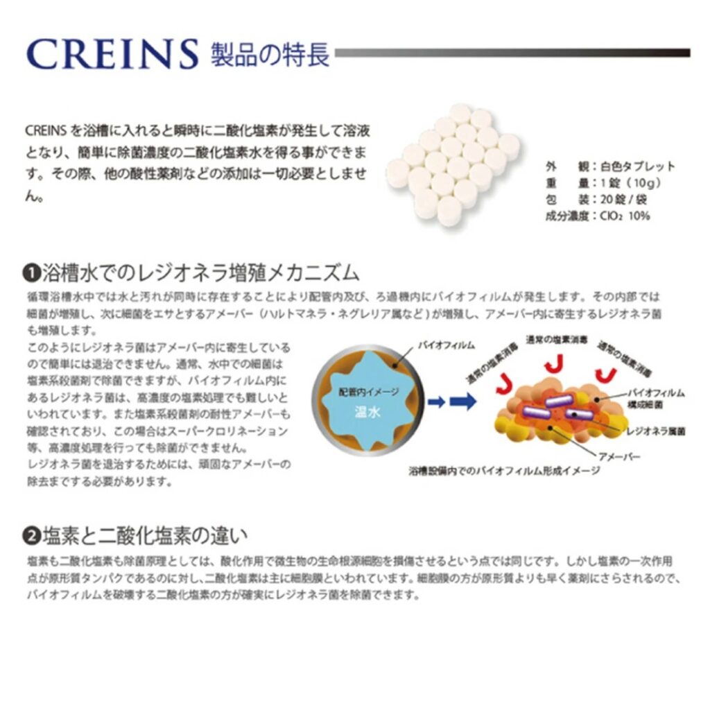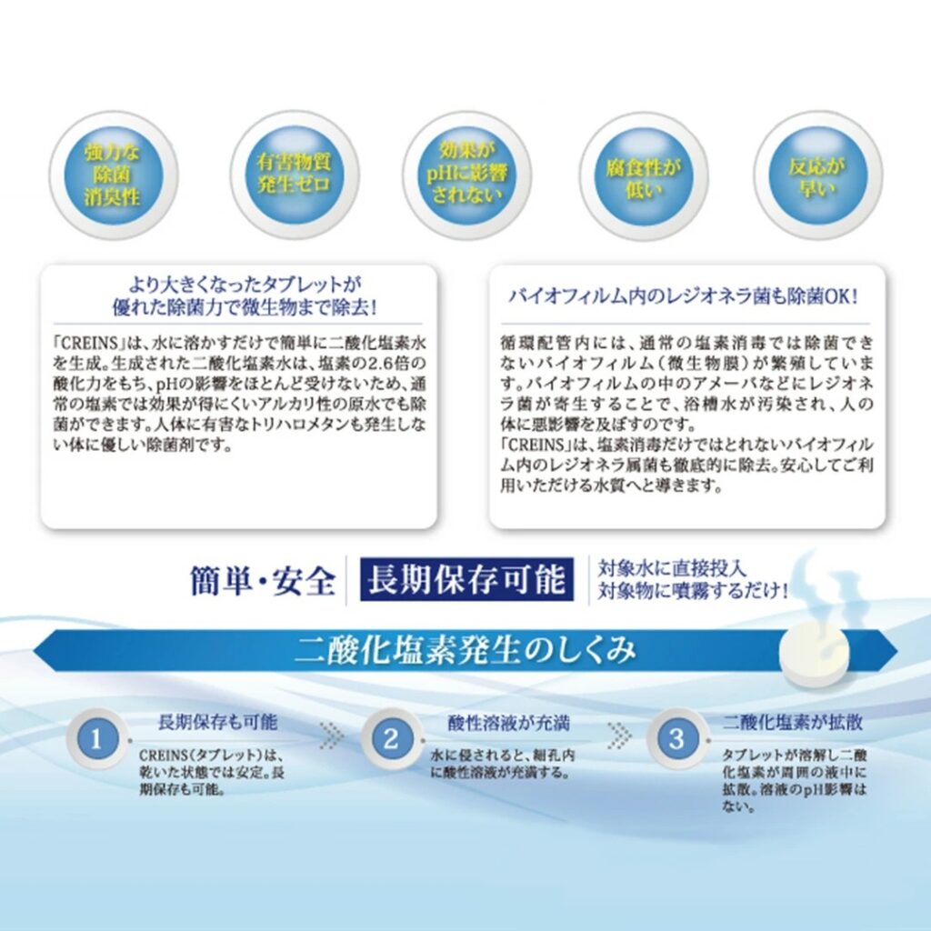 CREINS クリアンス (10g×20錠) 二酸化炭素発生タブレット レジオネラ菌対策 配管洗浄 除菌 消臭