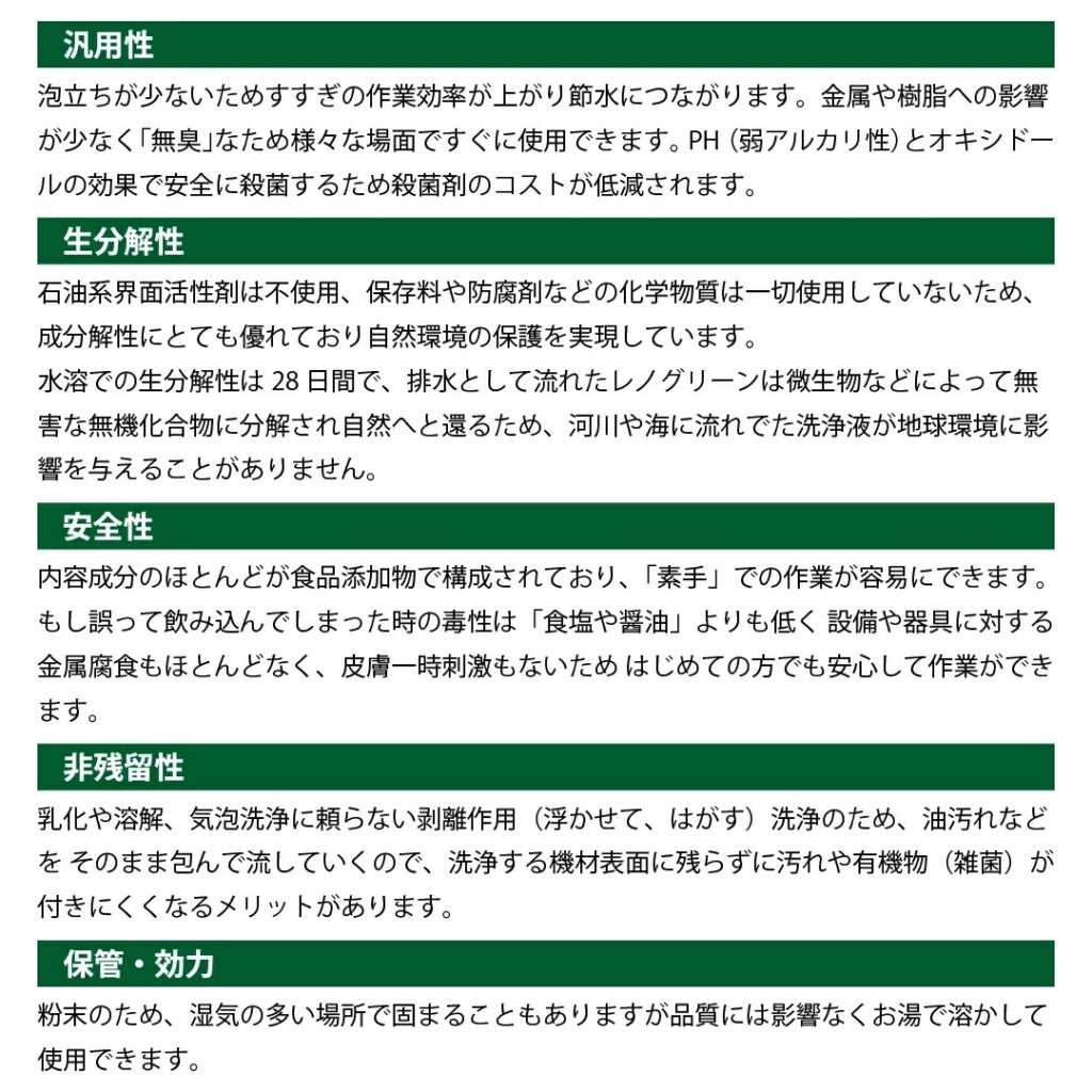 業務用洗剤除菌濃縮洗剤レノグリーン5g(1箱12本入) 食器洗い 洗浄除菌 厨房 ガラス 鏡掃除 油系界面活性剤不使用
