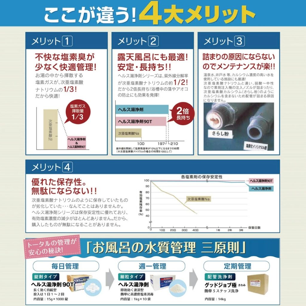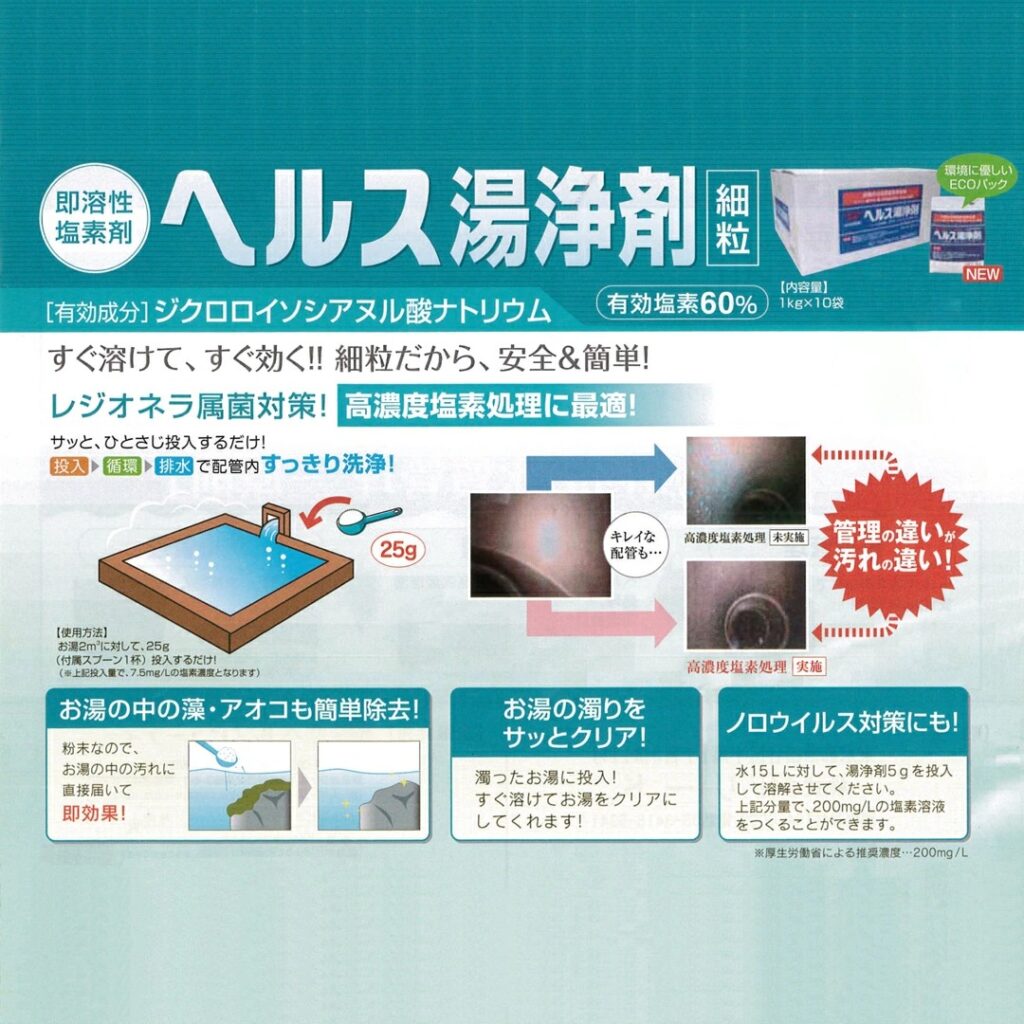 ヘルス湯浄剤(細粒) 即効型 1kg×10袋 1箱 水質管理剤 塩素管理 除菌剤 高濃度塩素消毒