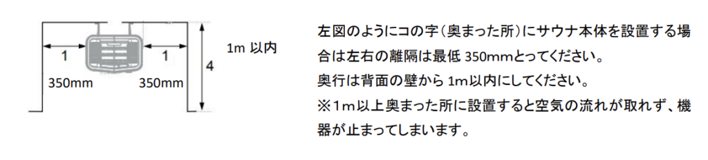 電気サウナヒーター設置時の離隔距離について