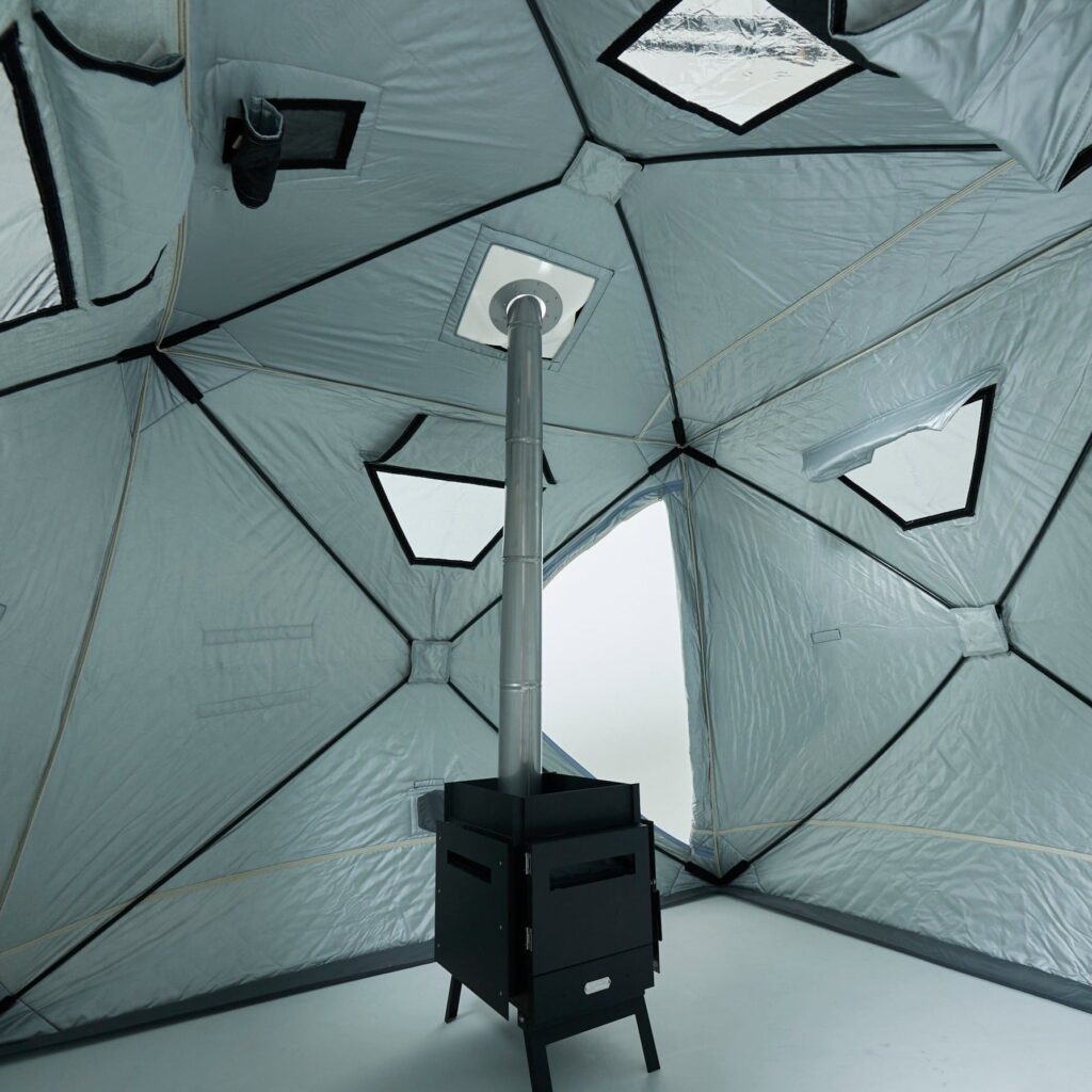 天井の煙突取り出し口には取り出し可能な金属円板付き煙突用パッチが付属しており、キャンプ用のテントとしても使用可能です。